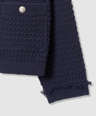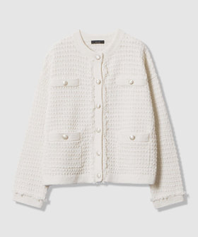 表情のあるコットンの意匠糸に短めのフリンジをあしらったツイードニットジャケットです。