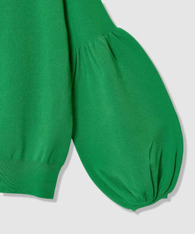 二の腕はすっきりさせ、肘上からギャザーを入れてパフスリーブにしたお袖をビショップスリーブといいます。