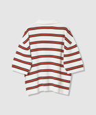 グラフィカルなボーダーは、大胆に配したワイドボーダーに細いオフを配して抜け感プラス。
