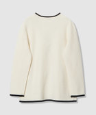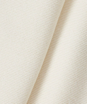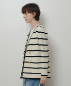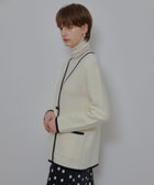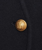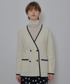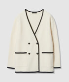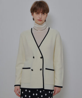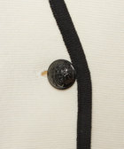 メタルのエンブレム釦が程よい華やぎを添え、アイボリーはブラックの配色パイピングでより洗練された印象に。