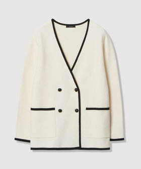 シーズンを跨いで活躍する、ワードローブに一枚持っておきたい万能ニットジャケットです。