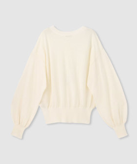 浅めのVネックとボリュームのある袖のシルエットが、シンプルな中にもエレガントなニュアンスをプラス。