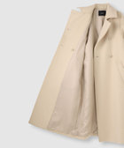 トレンチを思わせるトラッドなデザインに、滑らかで艶のあるシャルム加工素材を合わせ、上品で洗練された印象に仕上げました。