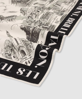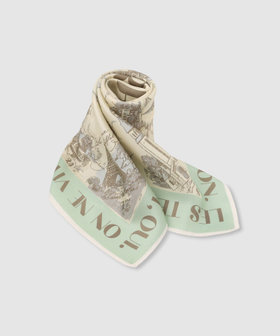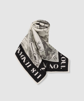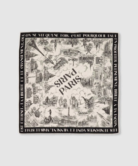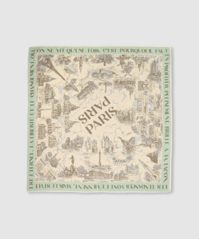 パリの街並みを繊細なタッチで描いた、ヴィンテージムード漂うシルクスカーフ。