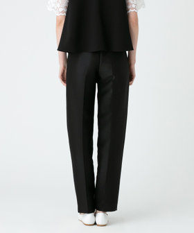 ウールとシルクをブレンドしたテキスタイルの上質な光沢が、大人の女性ならではの品格を醸し出すタックパンツ。