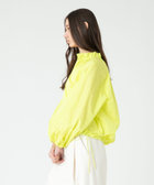 しっかりとしたハリのあるタフタ素材が、分量感のあるボリュームシルエットを描き出すプルオーバーブラウス。ネックラインに施したシャーリング&フリルが、大人の可愛さを引き立てるアクセントになってくれそう。裾のドロストの絞り具合を調節すれば、シルエットのアレンジも楽しめます。