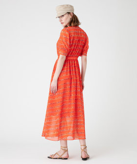 シルクのような風合いのポリエステルシフォンにプリントした、美しい発色のオリジナルのプリントワンピース。