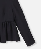 高めのウエスト位置でスタイルアップし効果も期待できるペプラムデザイン。