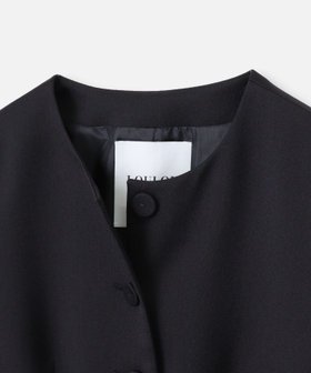 少しだけウールが入った、ツイル素材のノーカラージャケット。