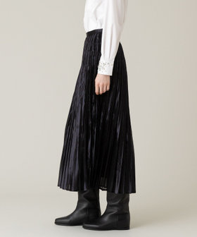 キラキラの光沢感と透明感が目を引くカールマイヤーの生地に三段階のプリーツ加工を施しグラデーション見えするプリーツスカート。