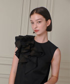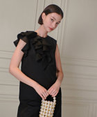 身頃の右側だけに大ぶりのラッフルフリルを重ね合わせています。