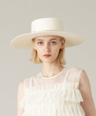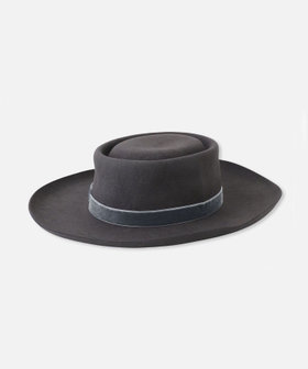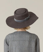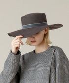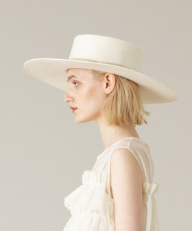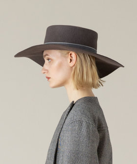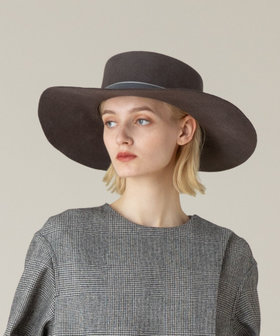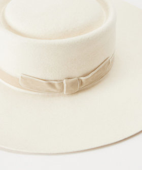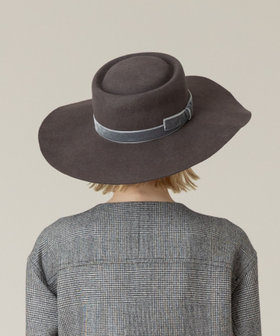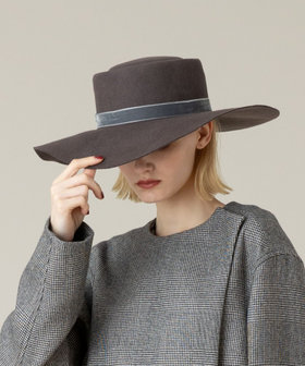 今年のトレンド、ベロア素材のリボンをあしらったつば広のフェルトハットです。