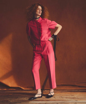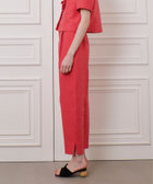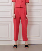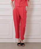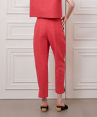 ピンクグラデーションの糸で織り上げた生地は印象的な表情が特徴です。美しいシルエットのタックパンツです。