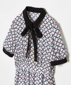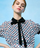さらっとしたジョーゼット生地のプリントに衿とカフス、リボンはしっかりとしたトリアセテートを使用した上品な印象のアイテム。