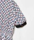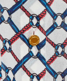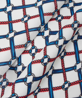 ブルーとレッドのロープ柄が差し色で、顔周りを華やかにしてくれます。