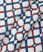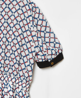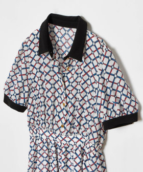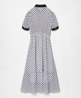 ロープとリングが重なり幾何学のようなチェック柄のようなプリントが特徴のワンピース。