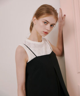 スリーブレスながら、肩巾を出してしっかりカバー。