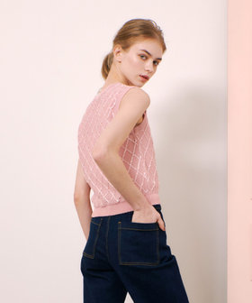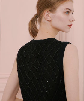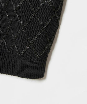 スパンコールを織り込んだキラッとした糸を格子柄のように刺繍したプルオーバー。