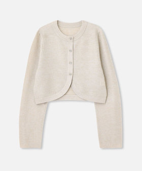 ラメ糸とビジュー釦が華やかなニットボレロ。
