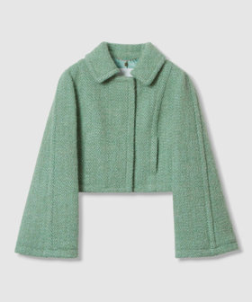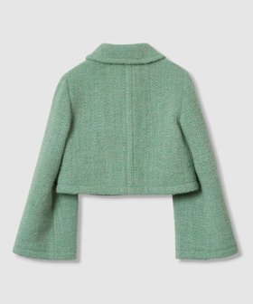 ミニ丈でベルスリーブが特徴的で、着用した方が美しく見えるジャケットです。