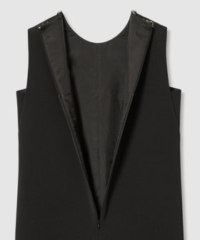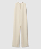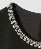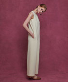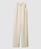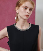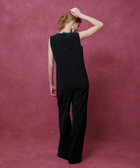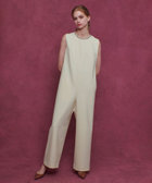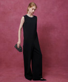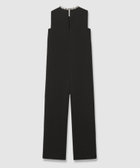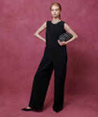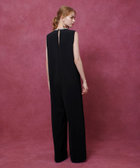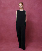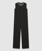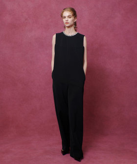 襟元にコスチュームジュエリーの様なビジューで装飾しているスペシャルなオールインワン。ストンとしたストレートのシルエットです。マチやダーツにより立体的なフォルムを作り上げています。シューズやバックの合わせ次第でドレッシーにもカジュアルにも仕上げくことが可能です。万能オールインワンです。