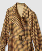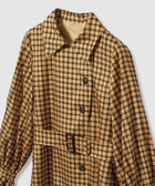 ステンカラーのダブルの打ち合わせに、太い共布ベルトがポイントです。
