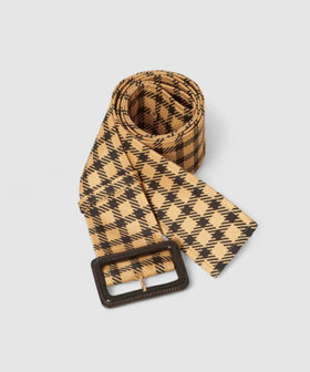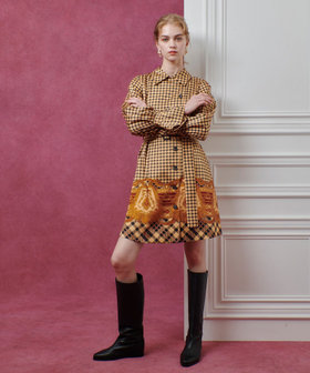 トラッドな印象のチェックと紋章(エンブレム)が合わさったトレンド感あふれる柄域。