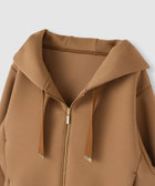 カジュアル過ぎない綺麗めな生地感やゴールドのジップ、グログランのテープなど女性らしさのあるフーディですのでフェミニン派の方も挑戦しやすいです。