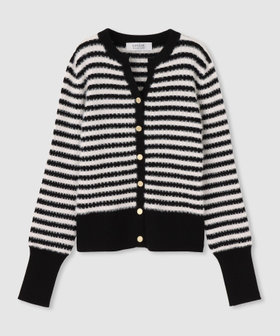 柔らかなフェザーヤーンを使用したボーダーカーディガン。