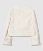 国内でオリジナルで作ったクラシックなファンシーツィード。程よい凹凸感で上品なツィード。セーラーカラーのデザインが新しいJK。こちらのセーラーカラーは取り外し可能で、内釦で取り外すとシンプルなノーカラーのデザインに変身。コーディネートやシーンに合わせてご着用して頂けます。新しいデザインでもトレンドに左右されずに長くご愛用頂けます。コンパクトの着丈で袖口に向かってやや広がりのあるデザインです。所々にフリンジを効かせてポイントにしています。