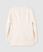 程よいふくらみのあるダブルクロスを使用。シンプルなノーカラージャケットですが、LOULOUの様々なアイテムに合わせやすい万能アイテム。ディテールを極力減らすために釦開きではなく、目立たないホックを使用。すっきりとしたシルエットで縦長に見えるパターンです。シーズン問わず長くお召し頂けます。