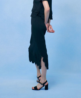コンパクトなシルエットながら、裾脇にスカラップ3枚分のスリットを入れることで足さばきも良く、歩くたびに軽やかで女性らしい表情を演出。きれいめにもフェミニンにも着回しやすい一着です。