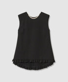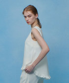 流れるように前後差のあるフリルの裾はヒップにかかるほどで気になる部分をカバーしてくれます。