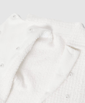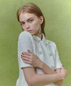 格子柄のツィード編み地は、毛足の長いコットンの糸を組み合わせることで温かみはありつつも分厚すぎない綺麗目な印象に。伸縮も抜群です。