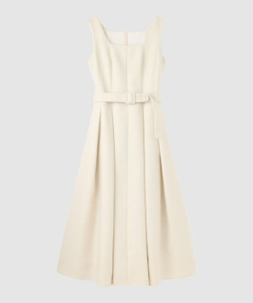 縦のラインが美しいプリンセスラインにウエストベルト付きで、すっきりと綺麗なシルエットを演出します。
