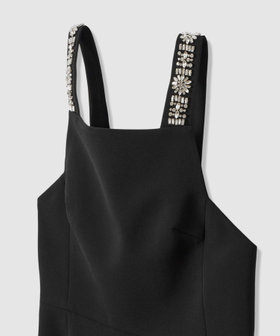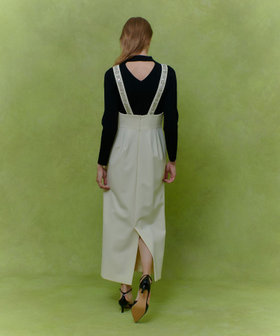 肩ひもにクリスタルのビジューを手作業で縫い付けたオートクチュールの様なジャンパースカートです。