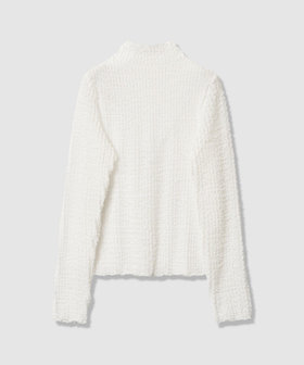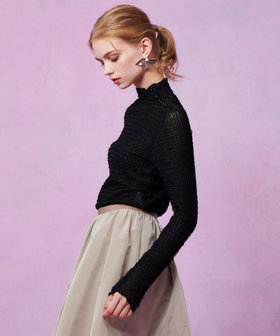 透け感と表面感を併せ持ったラッセルジャガード素材を使用した、伸縮性のあるインナーカットソー。