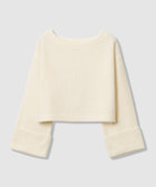 カシミヤをブレンドしたメリノウールをふんわりと編み上げ、仕上げに風合いを出す加工をして膨らみと温かみをプラス。風合いを活かしてふわりと抜け感あるシルエットを思い切った短丈に。ふんわりスカートに好バランス。