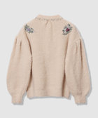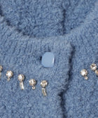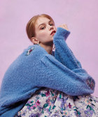 インポート生地のスカートに合わせた花柄をふわもこのニットに刺繍して。ヴィンテージ感漂うカーディガンに。ヴィンテージ風染めボタンがアクセント。ミドル丈のカーディガンは細ベルトでウエストマークするのも素敵です。衿ぐりには、ふわモコに埋もれるようなキラリビジューをあしらいました。