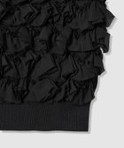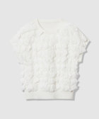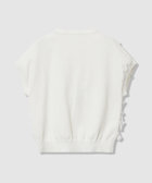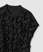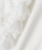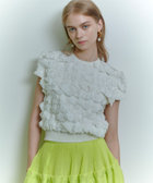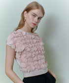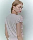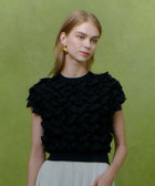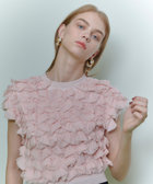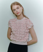 花びらのような(petal:ペタル)ギャザーフリルをふんだんにあしらったプルオーバー。お袖はフレンチスリーブで1枚でも着やすく、フリルと同素材を使用したペタルパピヨンカーディガンとアンサンブルで着ていただけます。(オフとクロのみ)差し色に淡いピンクをつけています。