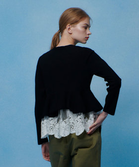【LOULOU WILLOUGHBY】レースレイヤーペプラムカーディガン