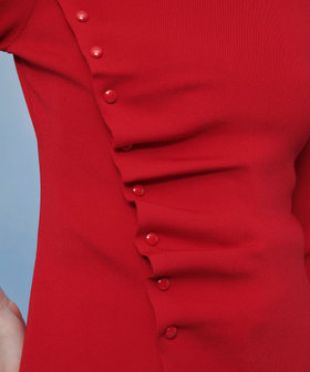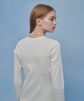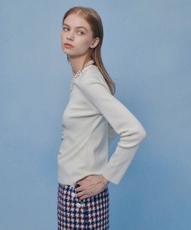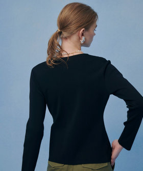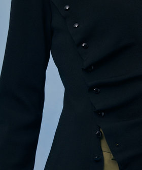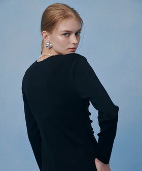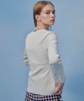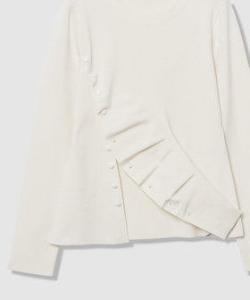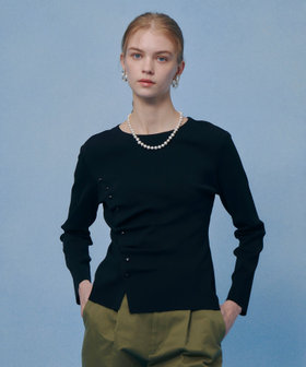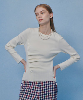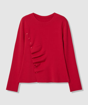 ボタンとニットのドレープがアクセントになったプルオーバー。