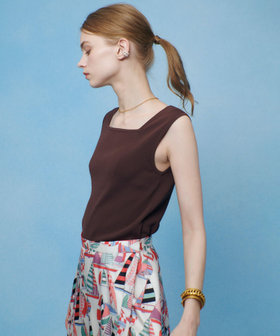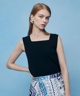 ネックラインをすっきりと美しく引き立てるスクエアタンクトップ。