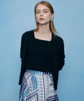 スクエアタンクは下着が響かない様に程よく厚地なのに対して、羽織るカーディガンは軽めに仕上げました。