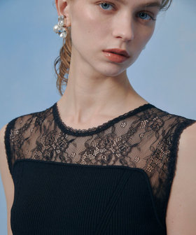ランジェリーライクなレースをあしらった、センシュアルなムード漂うトップス。