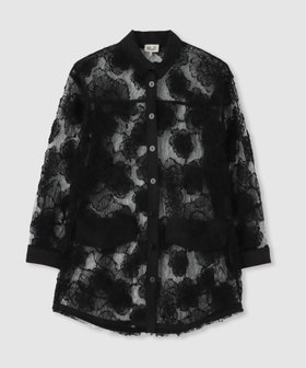 シアーな花柄レースが目を引く、華やかでエレガントなレースブラウス。