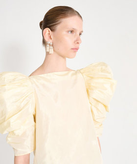 立体的で華やかなボリュームスリーブが印象的なブラウス。