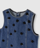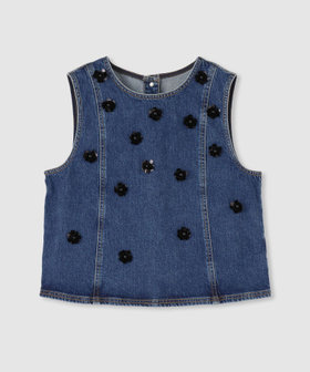 スパンコールのフラワーディテールが華やかなノースリーブデニムトップス。