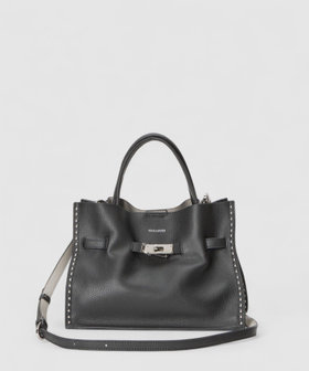 ソフトな質感と軽さが特徴のイタリアンWフェイスレザーを使用した定番トートバッグにスタッズがきいています。金具がシルバーの為、カジュアルにも使えるのも魅力。しなやかで傷の付きにくいシボの型押しレザーは上品で、使い勝手も良いので幅広いシーンでお使いいただけます。長財布が収納可能で、ショルダーストラップ付きなので斜めがけができる2way仕様です。