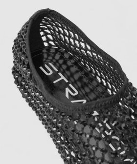 メッシュ素材にラインストーンが散りばめられたフラットシューズはソックスの様に軽い履き心地で、どんなコーディネートにも合わせるだけで今年らしいムードを演出してくれます。